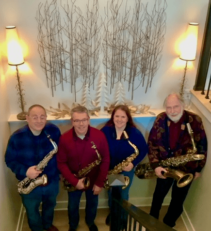 For many years during the holiday season, the Central Kentucky Saxophone Quartet has presented two-hour marathon concerts of traditional holiday music served up in arrangements often calling for considerable virtuosity. As the makeup of the CKCB saxophone section has changed over the years, so too has the membership of the quartet. This year’s ensemble consists of current CKCB members David Eirich, Rachel Jacobs, and Lee Patrick and CKCB emeritus member Charlie Kahn.