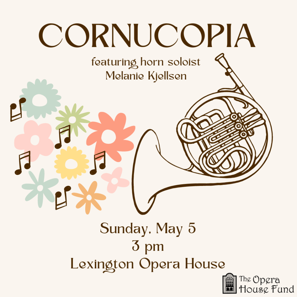 Join us on Sunday, May 5 @ 3pm at the Lexington Opera House for our May concert, Cornucopia, featuring horn soloist Melanie Kjellsen.